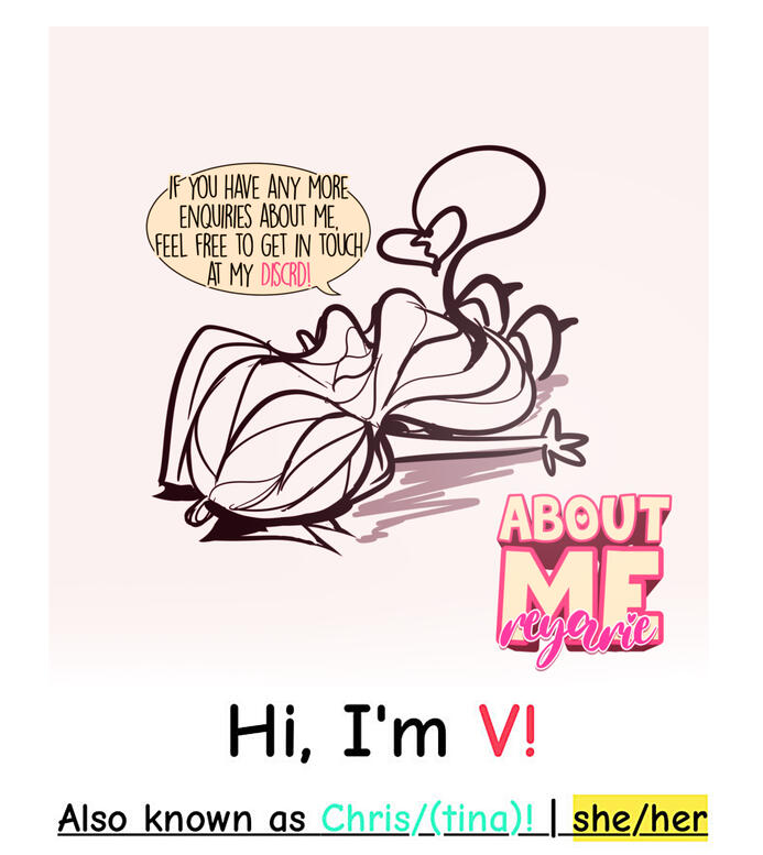 ❤︎ ibisPaint, for quick graphics.My favourite things? They include: drawing (have you been listening?), practically doing any of my hobbies well, being validated, going to exciting places, hard efforts paying off, FOOD, receiving money (hehehe), and having an all round good fun time with the people I love.My triggers (and such) on the other hand? Well, those go something like: drama (especially personal drama, not good for my autism), idiotic/toxic/general asshole-type people, blatant racism/homophobia, gaslighting, poorly written/produced movies and shows (unless they're funny, in which case I LOVE those!), my favourite things being cancelled/ruined/shut down or otherwise ended.